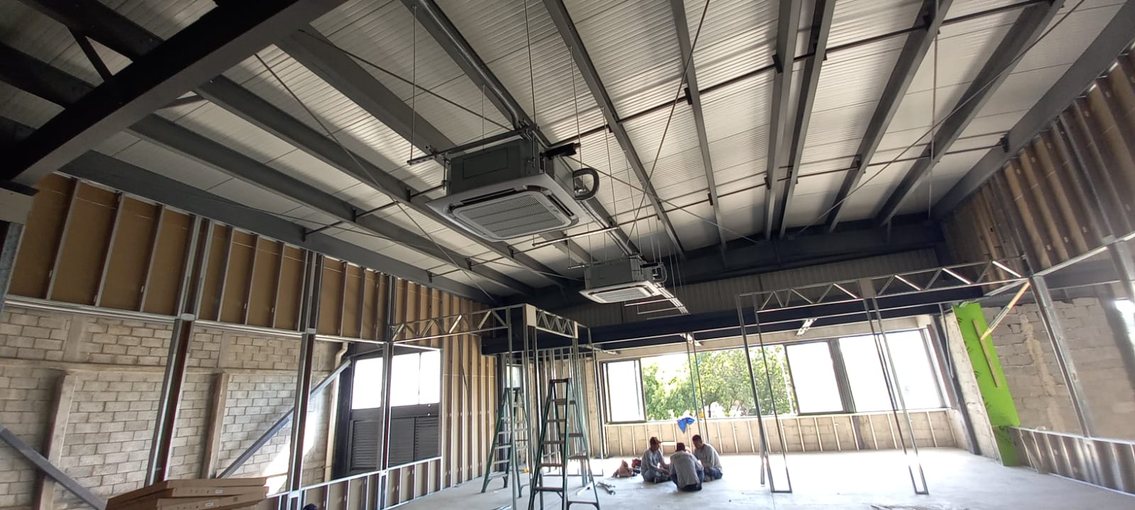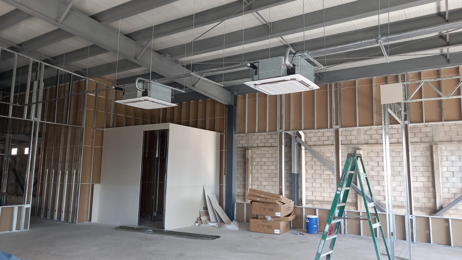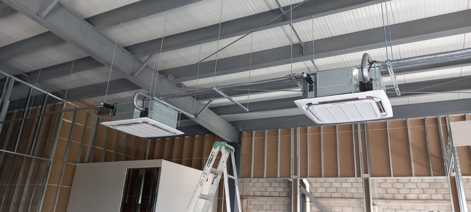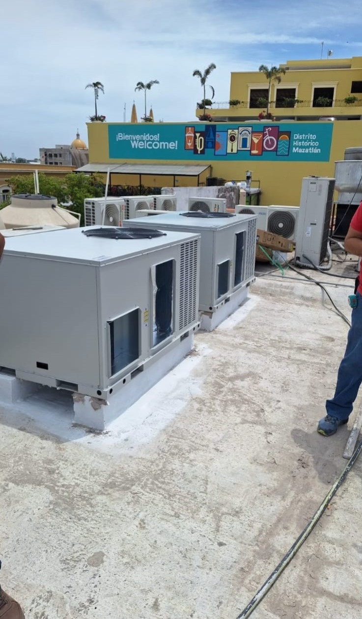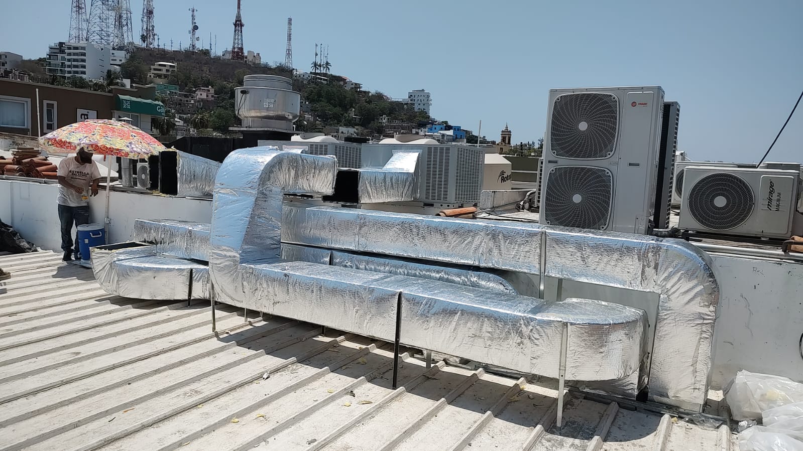 Suministro e instalación de aire acondicionado tipo paquete, así como ductería y rejillas.
